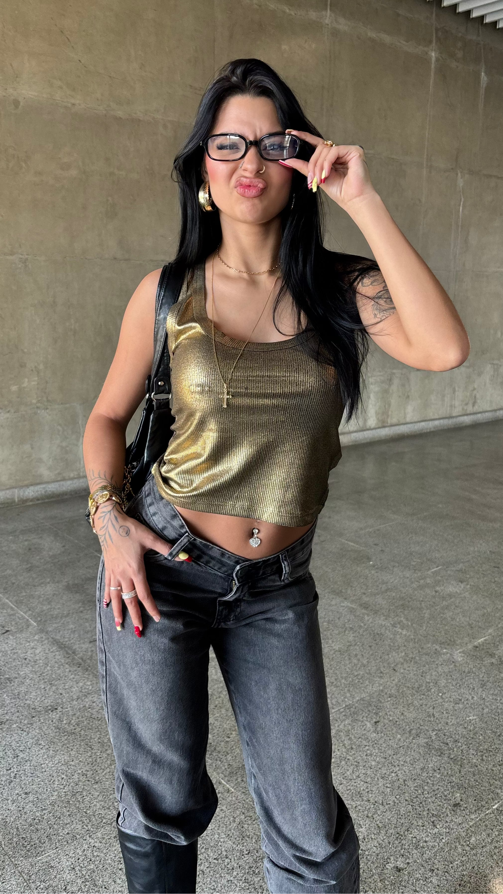 CALÇA JEANS OVERSIZED PRETA ESTONADA
